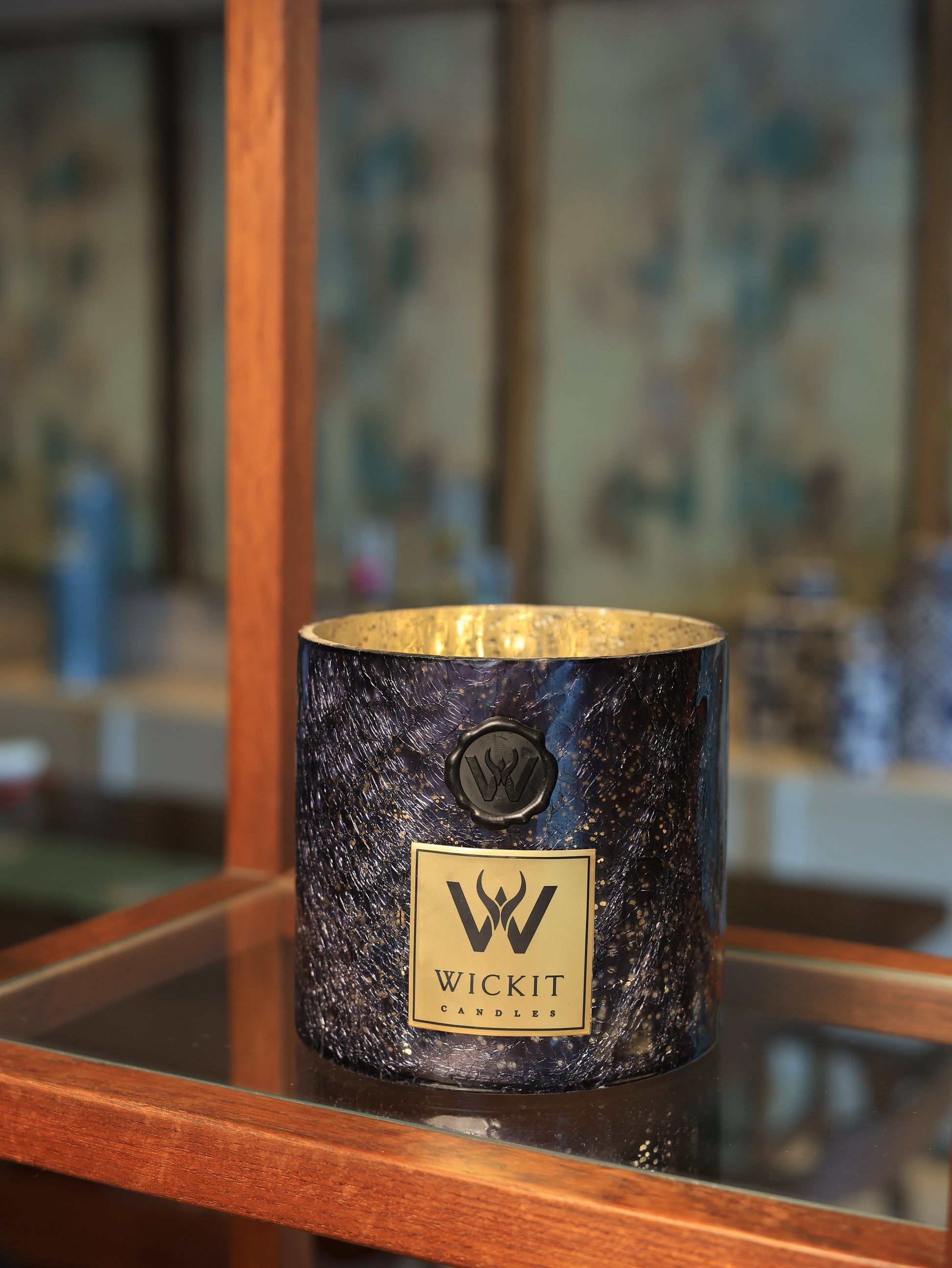 Obsidian combines a dark, richly textured exterior with a softly illuminated interior, offering a striking play of contrast. As the flame burns, subtle light filters through the crackled glass, creating depth and mood. Elegant and atmospheric, it suits both modern interiors and dramatic evening settings.